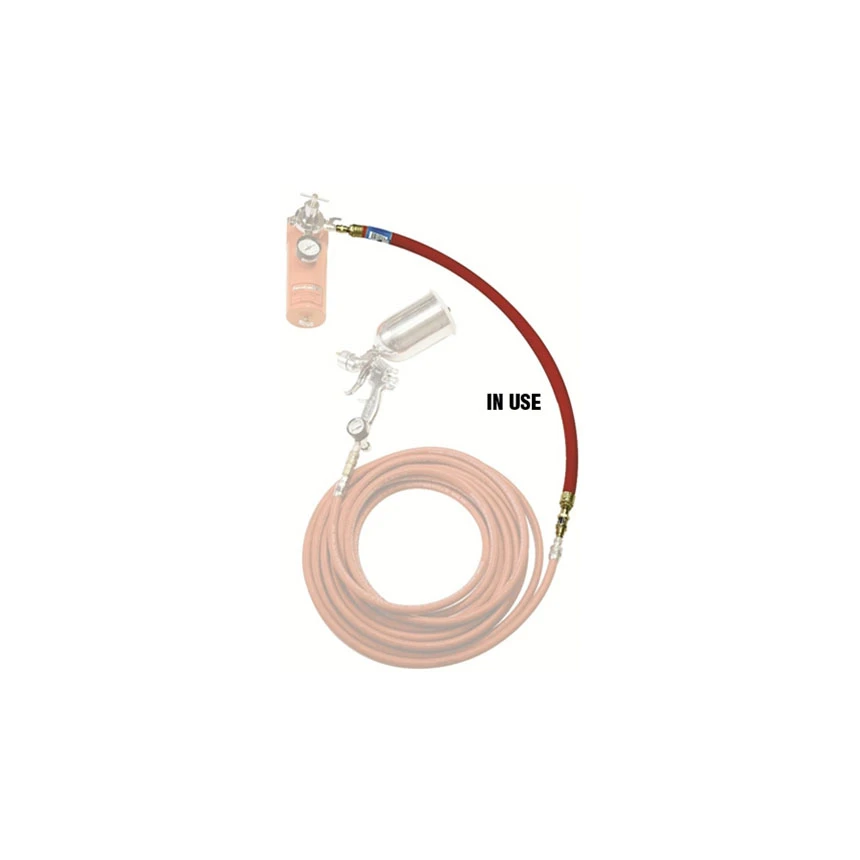 The DeVilbiss Desiccant Snake contains an effective desiccant in a distinct design to minimize paint defects from air line moisture. It combines desiccant drying down to -40°F dew point with built-in aerosol filters for oil and dirt. This ensures that humidity is reduced in the air delivered to spray guns. This desiccant snake mounts inline with an air hose, and it requires a simple installation that takes just a couple of minutes. Install it at the end of the air line. It serves to replace old technology with gun bulb filters. It can be used with conventional spray equipment and HVLP. The long and narrow construction has one-inch brass ferrules and 1/4-inch brass thread connectors.