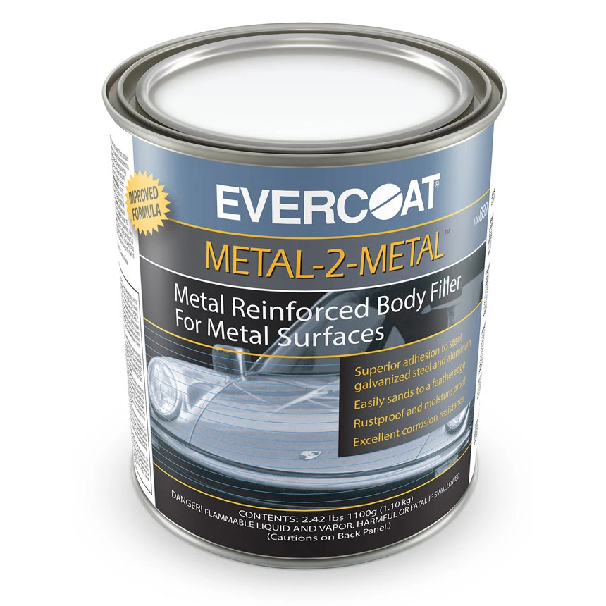 This product can be used on fiberglass and sheet metal compound (SMC) panels and has especially strong adhesion to galvanized steel and aluminum. It does not sag and can be easily sanded to achieve a featheredge finish. Available in 1 Quart cans, the Metal-2-Metal Aluminum Reinforced Filler comes with a Metal-2-Metal Aluminum liquid reactor.