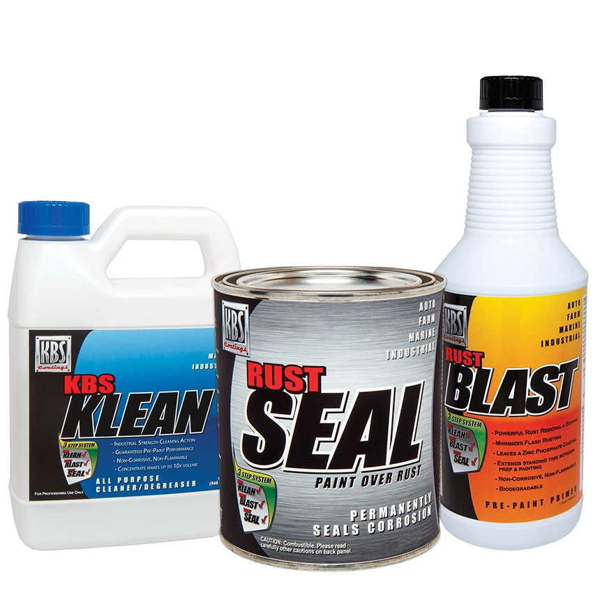 The Frame Coater Kit is our complete quart size kit that includes enough products to Klean, Blast, Prep, and Seal a full-size car or truck frame, or any 50 sq. ft. area with 2 coats of paint coverage and rust protection. KBS Coatings’ 3-STEP SYSTEM of RustSeal (a rust preventive coatings), KBS Klean (an industrial strength water-based cleaner / degreaser) and KBS RustBlast (a powerful rust remover / metal etch) is the most effective rust and corrosion prevention system available today.