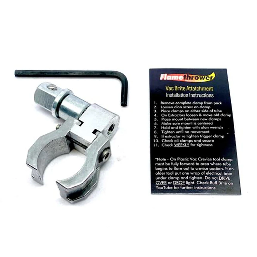 This Kit works perfect with the new quick disconnect Flamethrower ll kit and that is what you’ll need to make your Rupes Nano or Pressure Washer well-lit in every situation. This is simply the clamp to make it mount up for easy on and off connection. When you don’t need it the clamp and hub simply stay mounted and ready for the next time you need excellent lighting!