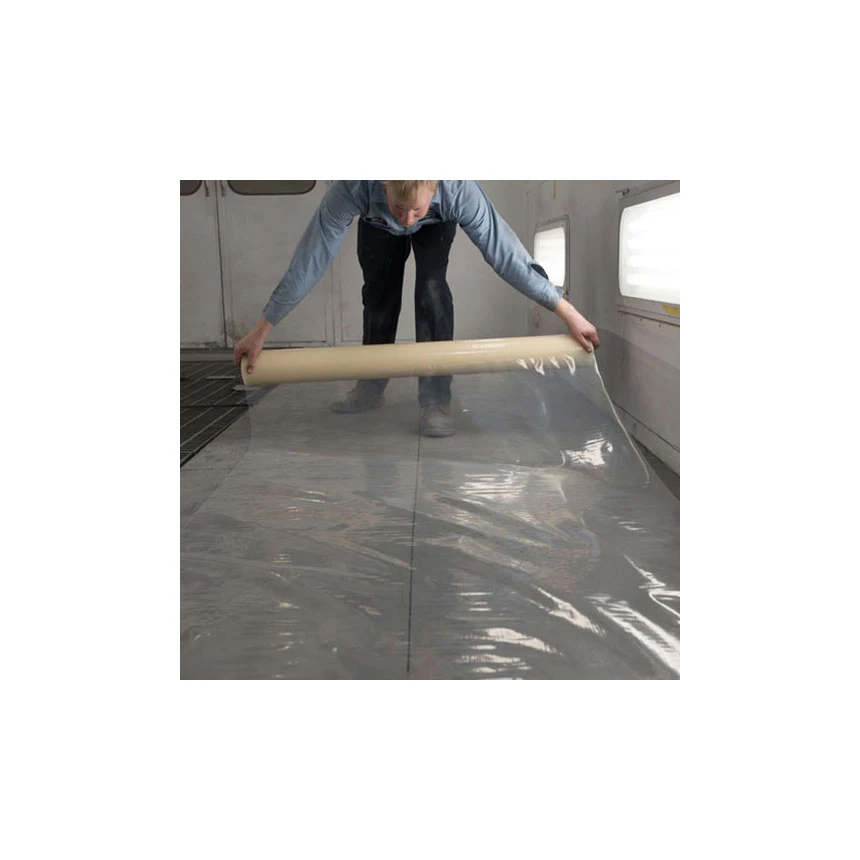 Clear and white heavy-duty protective films are used to keep floors clean, and few do it as well as the RBL Products 48″ x 200ft Spray Booth Floor Film, Clear – 421. This film is extremely easy to apply. Simply unwind the roll and lay it out where you need it to be. Because the film is self-adhesive, you don’t have to worry about it not staying in place! The film also lasts for longperiods of use thanks to its heavy-duty mil gauge plastic that resists tears, punctures and disintegration. It can even be rinsed with water and squeegeed clean after application!