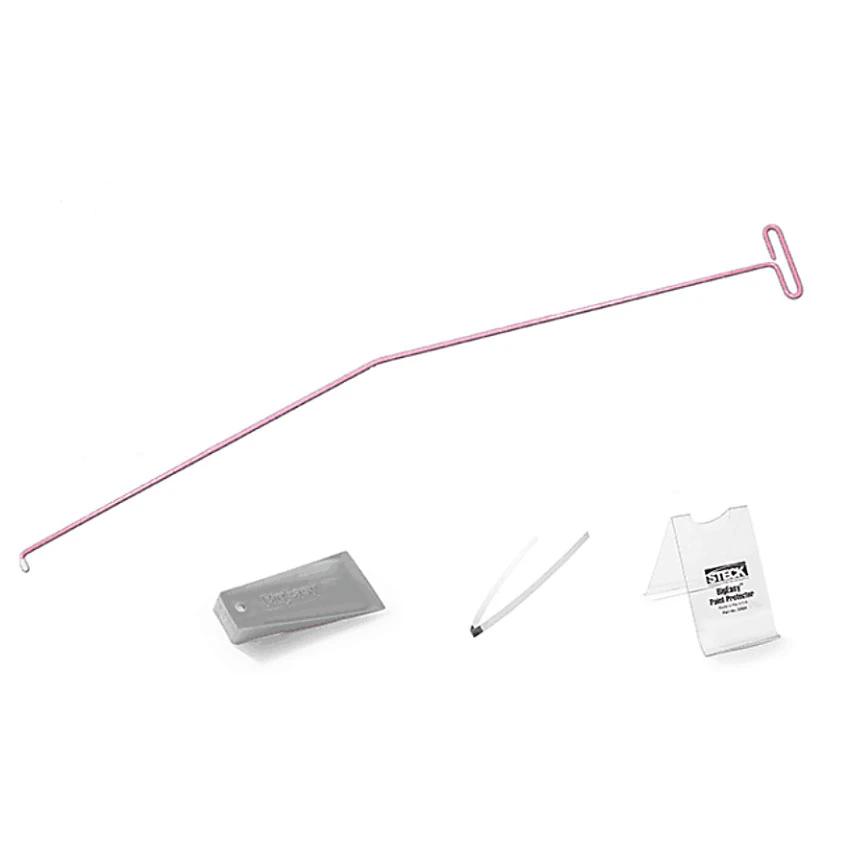 This professional kit includes all the essential tools you need for car lockouts. The Steck BigEasy is a 55 inch steel rod coated in a high visibility powder coating. Because of its long length, the Steck BigEasy Tool Kit is ideal for depressing the unlock button, accessing the pull handle, and lifting the lock button. It can get into all the tight spaces. The smooth plastic non-marring wedge does not damage the door or weather stripping.