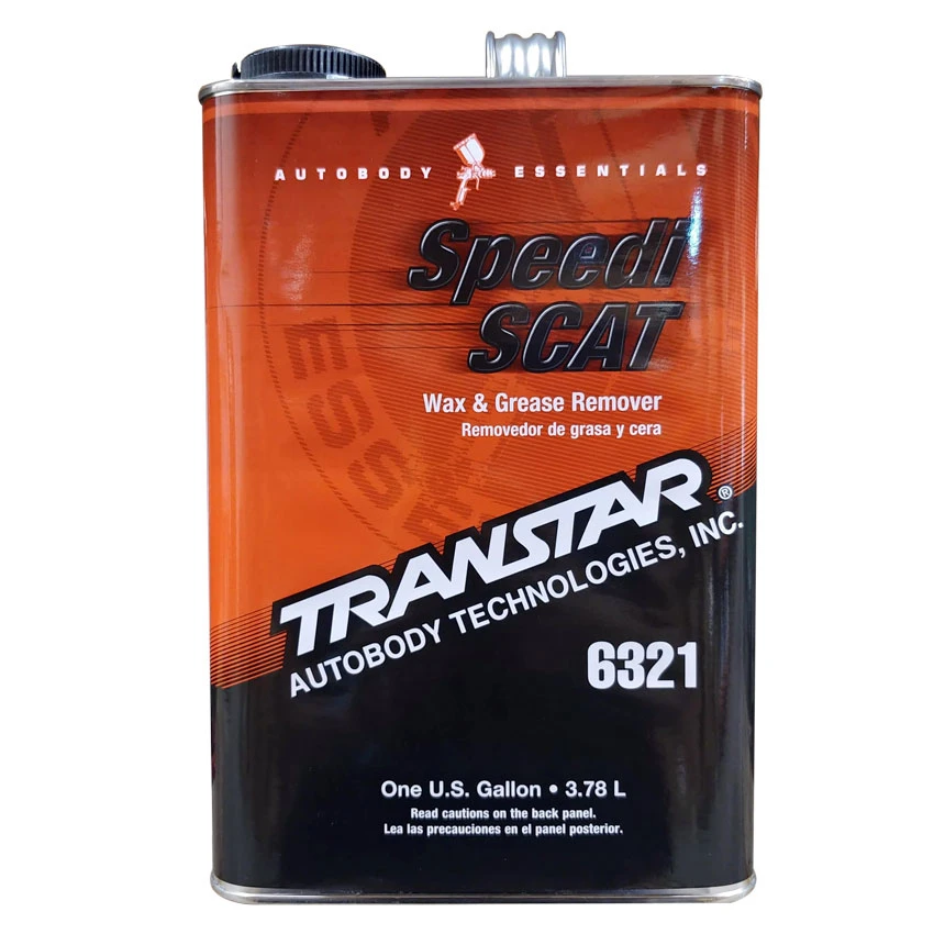 Speedi SCAT is a specially formulated solvent blend for lifting and removing wax, silicones, grease, oil, and other potential contaminants from surfaces to be painted. This product quickly dries for a residue free surface. Speedi SCAT is the ideal pre-paint prep product and can be used on virtually any substrate: metal, fiberglass, plastic, painted finishes, etc. Ideal for in-booth use.